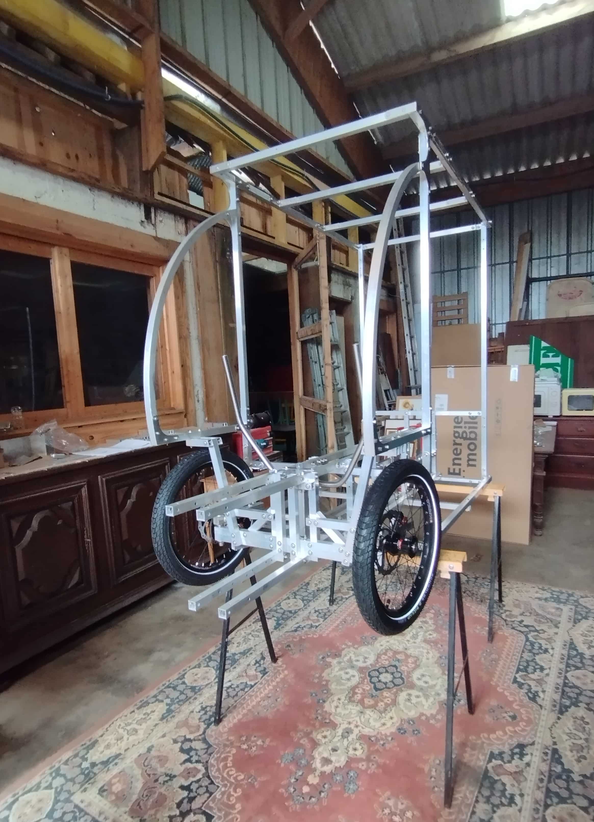 (Rediff) Connaissez-vous le Vhélio ? Ce « véhicule intermédiaire » entre le vélo cargo et la voiture électrique, peut transporter des passagers et des marchandises, et supporte 200 kilos. Et on peut construire le « Vhélio’tech » soi-même, grâce à la documentation en ligne fournie par l’association Vélo Solaire pour Tous. Un projet à la fois collaboratif et low tech, qu’a testé la semaine dernière une petite équipe de bricoleurs et bricoleuses de Pontivy, lors d’un atelier.